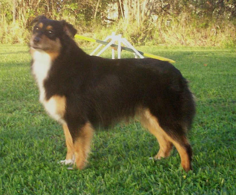 Clips is a wonderful and exciting red merle bitch. With dark rich copper and exciting personality, she really stands out! Her sire is ASCA / AKC CH. Soundtrack's Johnny Five. She has an abundance of energy and is full of Love...