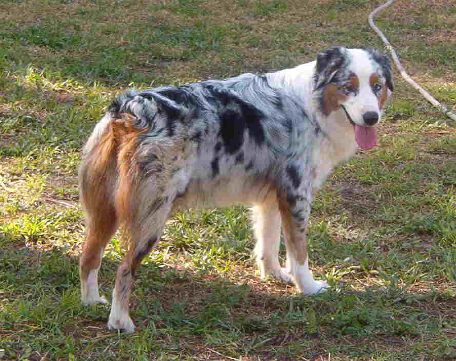 This young girl is awesome! A vibrant blue with copper and white, Sissers stands out. She is out of Soundtrack's Dub of Jobey, a littermate brother to ASCA/AKC CH. Soundtrack's Johnny Five, DNA-CP and out of Soundtrack's Sheza Pepper Two, a littermate to our Missy.