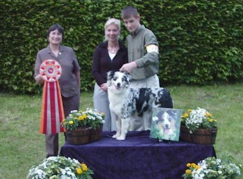 Classy Wins the Open Blue Bitch Class at the 2000 Nationals!!! WooHooo!!! There was some really tough competition. Classy was also PULLED out in the third position for Winners Bitch...Not bad for coming into heat the night before, and being only three weeks into her new Coat!