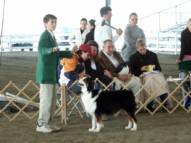 preparing for his CD and getting ready to start agility. His first Obedience show my 9 year old son, Justin took him in Pre-Novice and Johnny and Justin won 1st place both days over three adults. Johnny is DNA'd through ASCA and AKC.